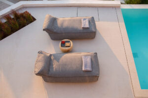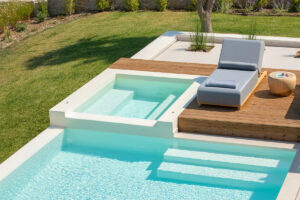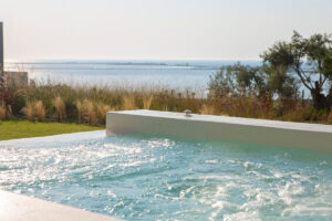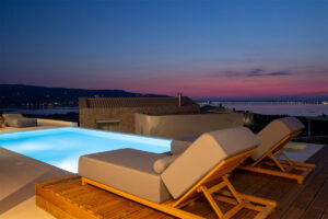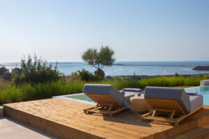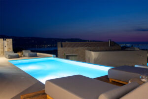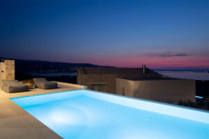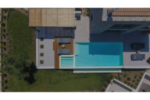אזור החיצוני כולל: ‎ בריכת שחייה בשטח של 35 מ"ר עם ג'קוזי/ספא משולב , פטיו מעוצב באלגנטיות עם מיטות שיזוף גדולות ונוחות וכיסאות נוח,  טרסה מוצלת המציעה ברביקיו וחוץ. אזור בילוי הכולל מטבח חיצוני, פינת אוכל, נוף ים צלול ושקיעות צבעוניות מרהיבות.