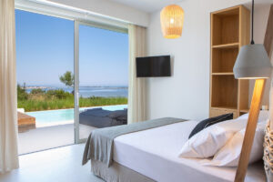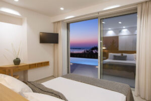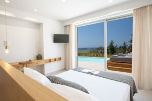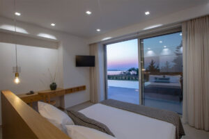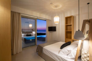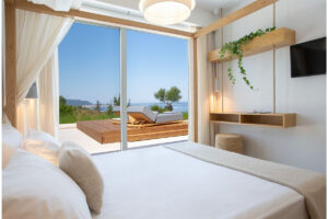 3 חדרי שינה ראשיים מרווחים. מרוהטים במיטות קינג סייז מפוארות, עם חדרי רחצה צמודים מפוארים ומרפסת גדולה המשקיפה על נוף ים פתוח .