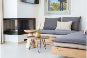 וילה בגודל 150 מ"ר בקומה אחת מעוצבת עם עיצוב פנים מודרני מרווח בסגנון מינימליסטי דקורטיבי