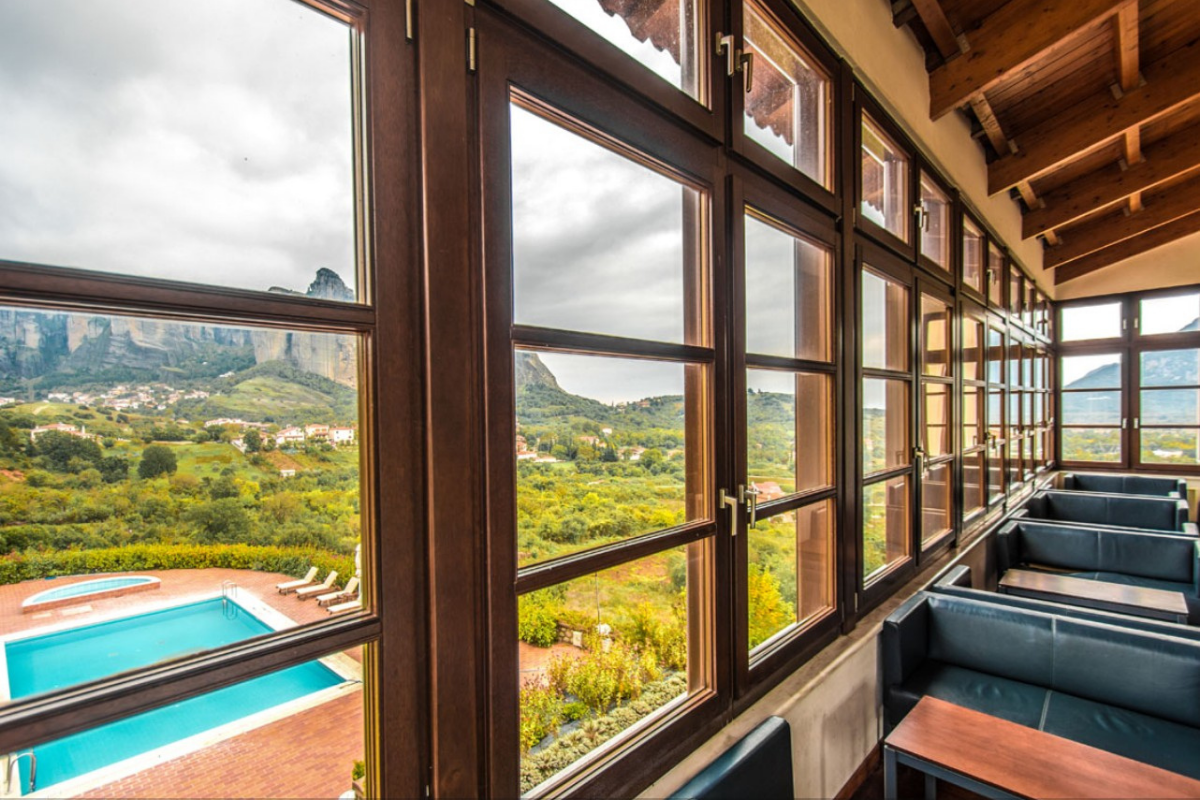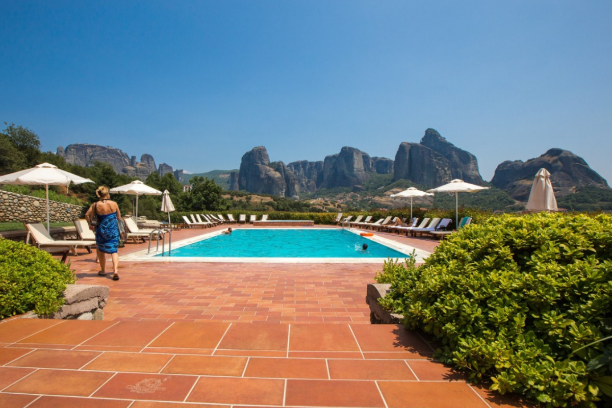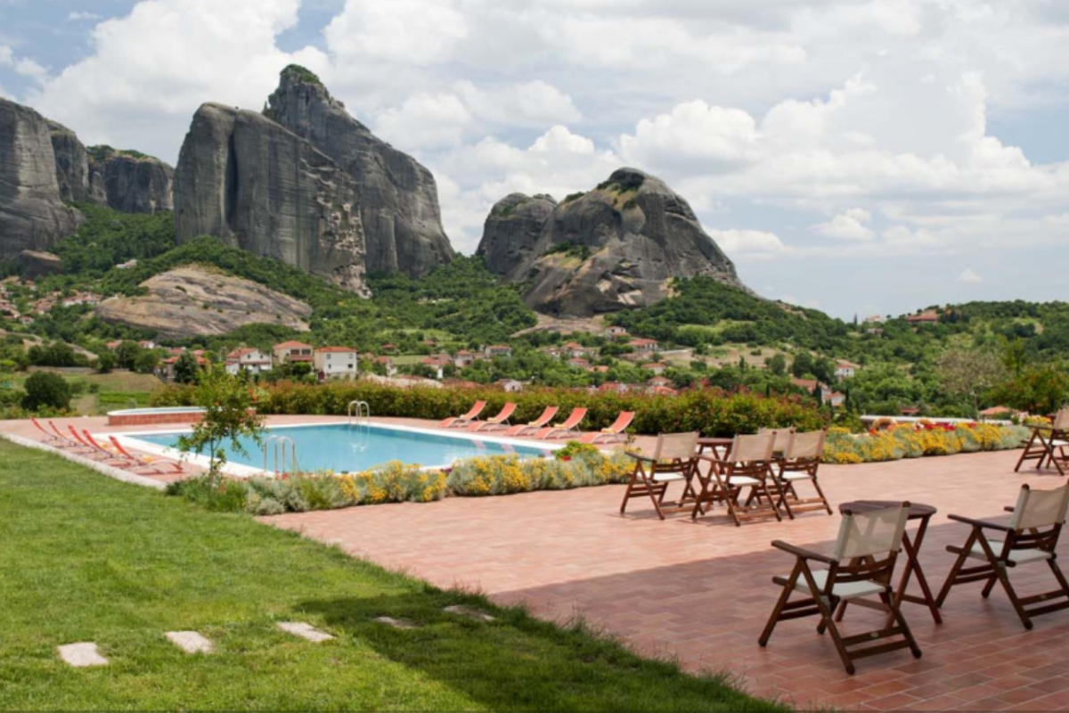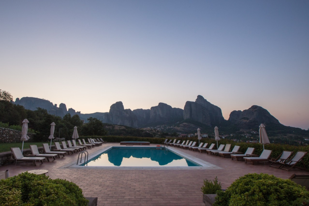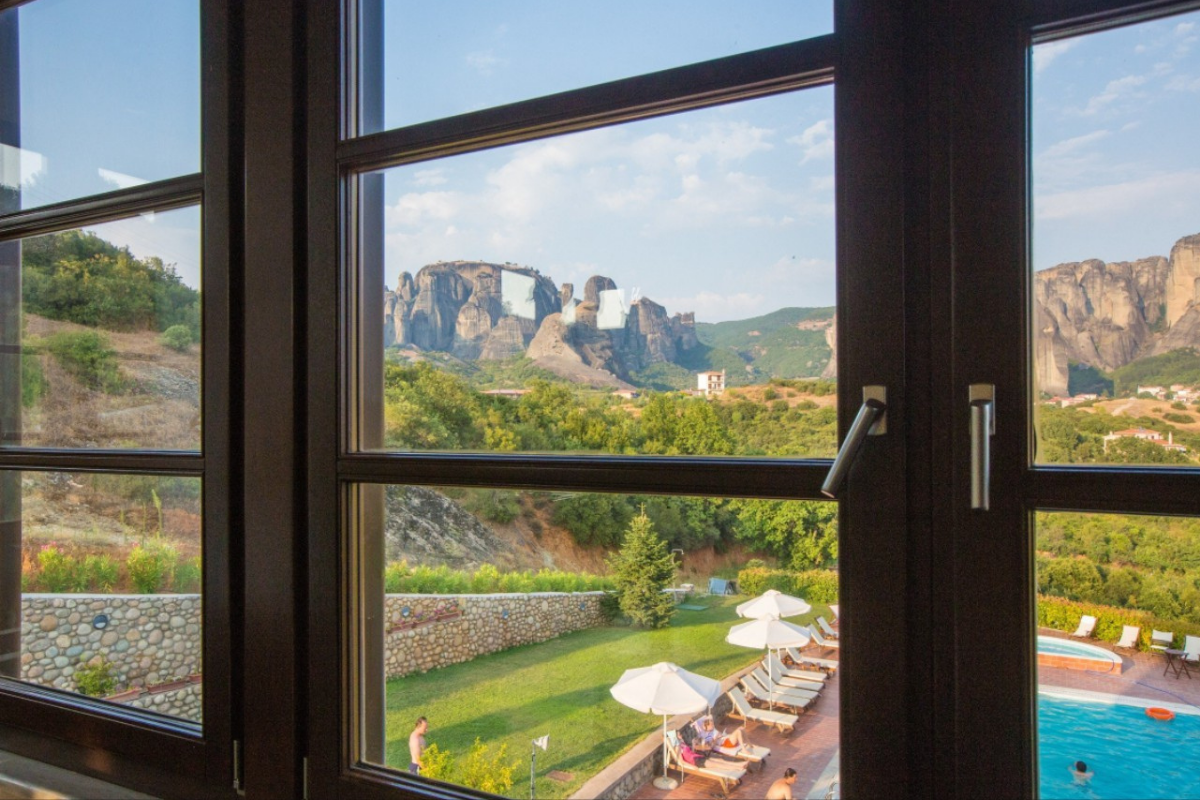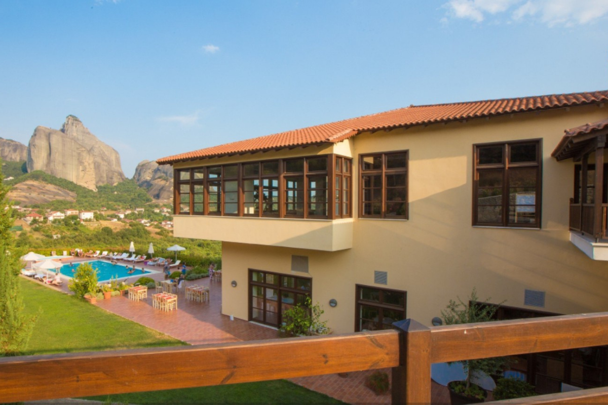 It is built on the highest point of the Kastraki area and visitors can enjoy the stunning view of the Meteora rocks from every corner of the hotel.
