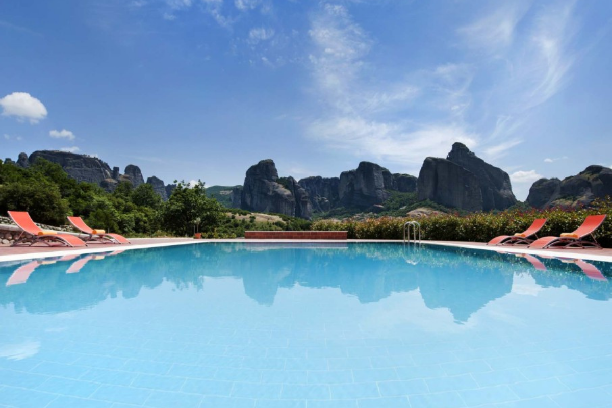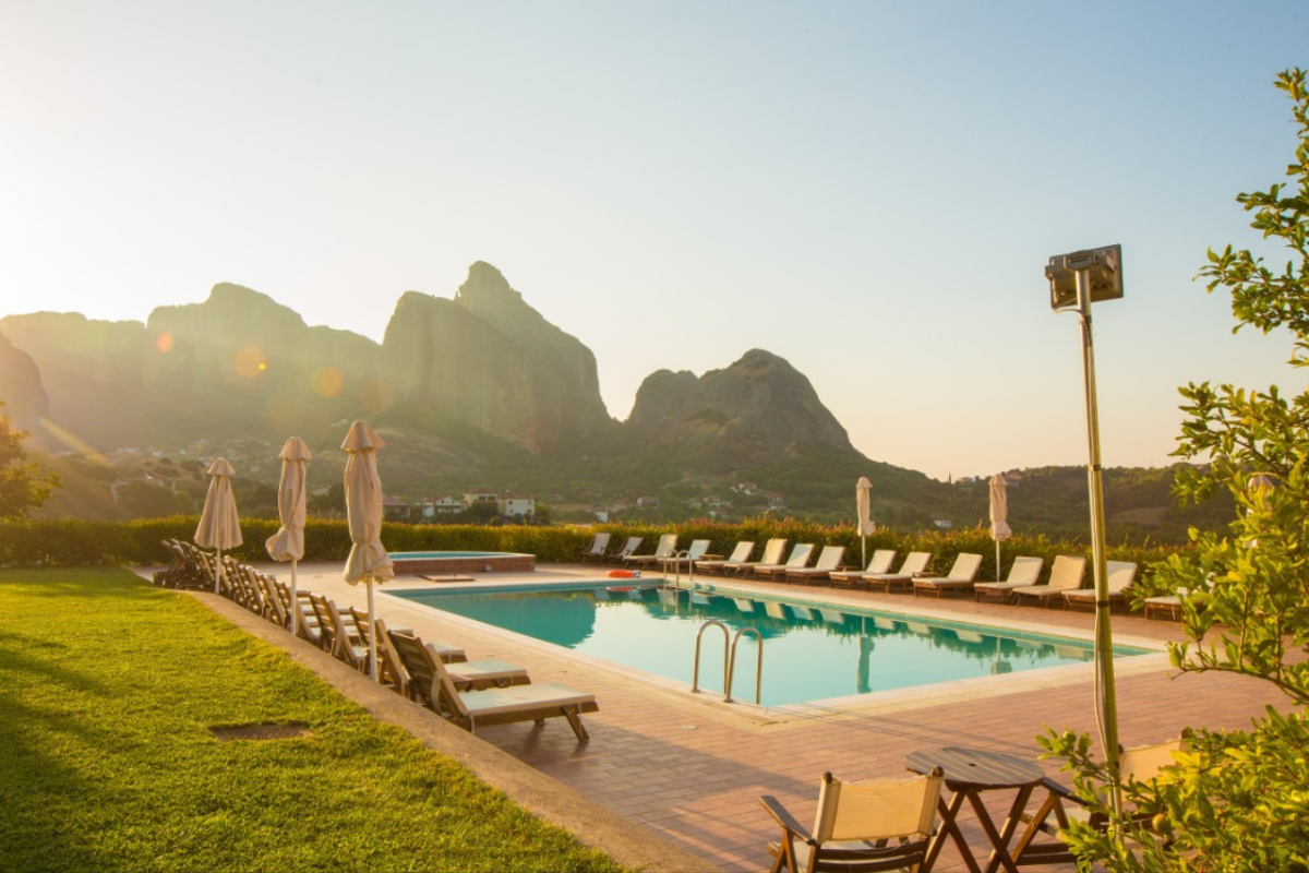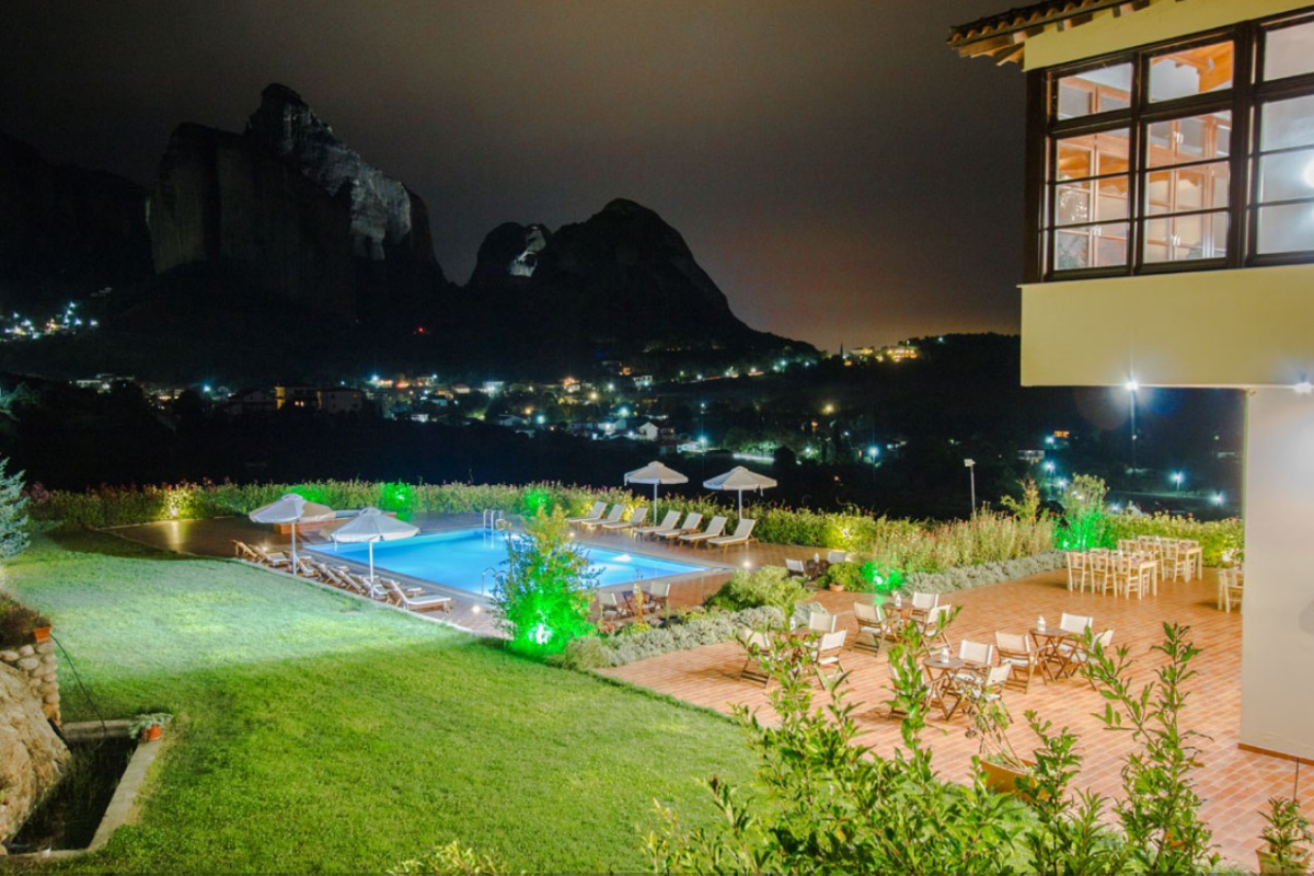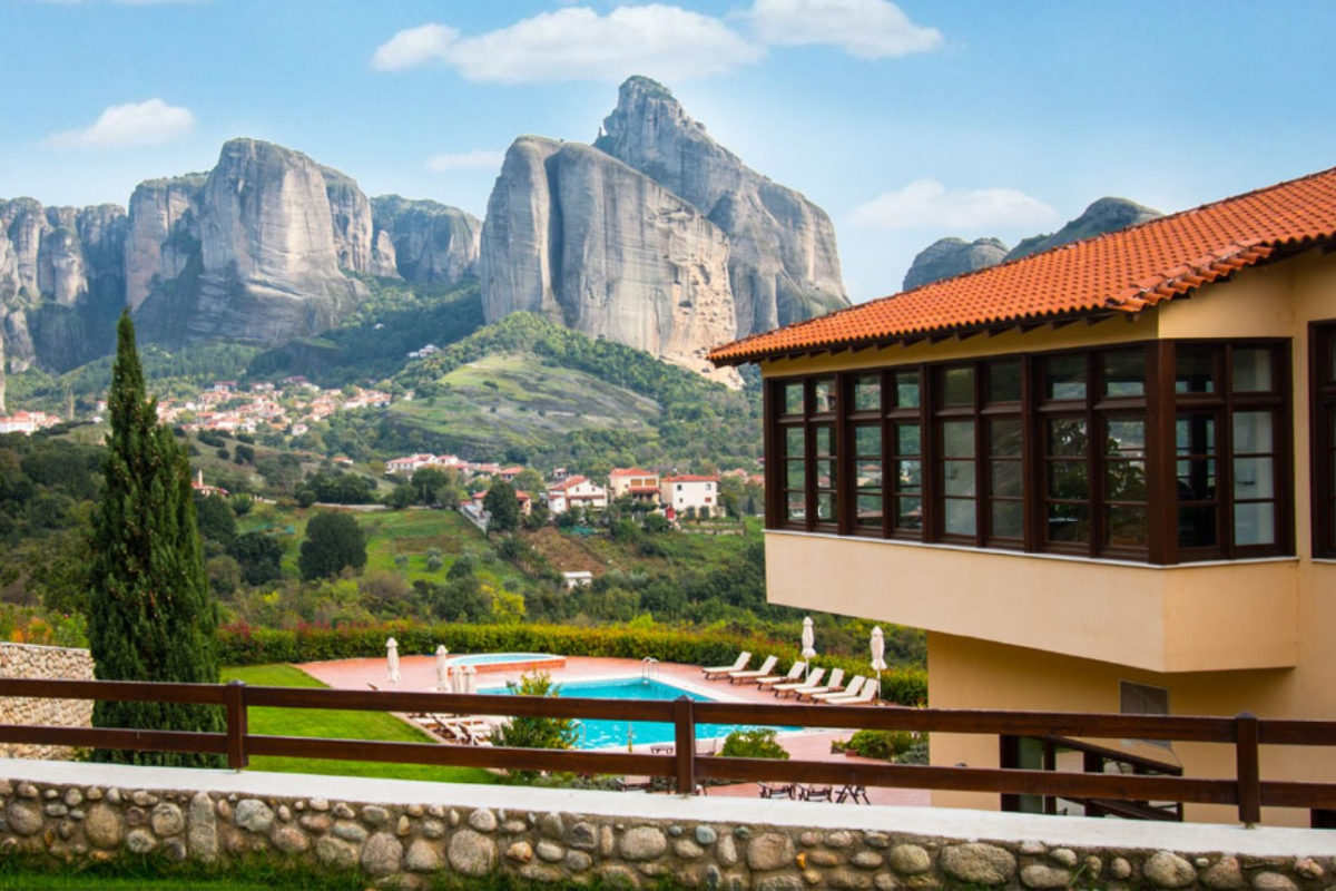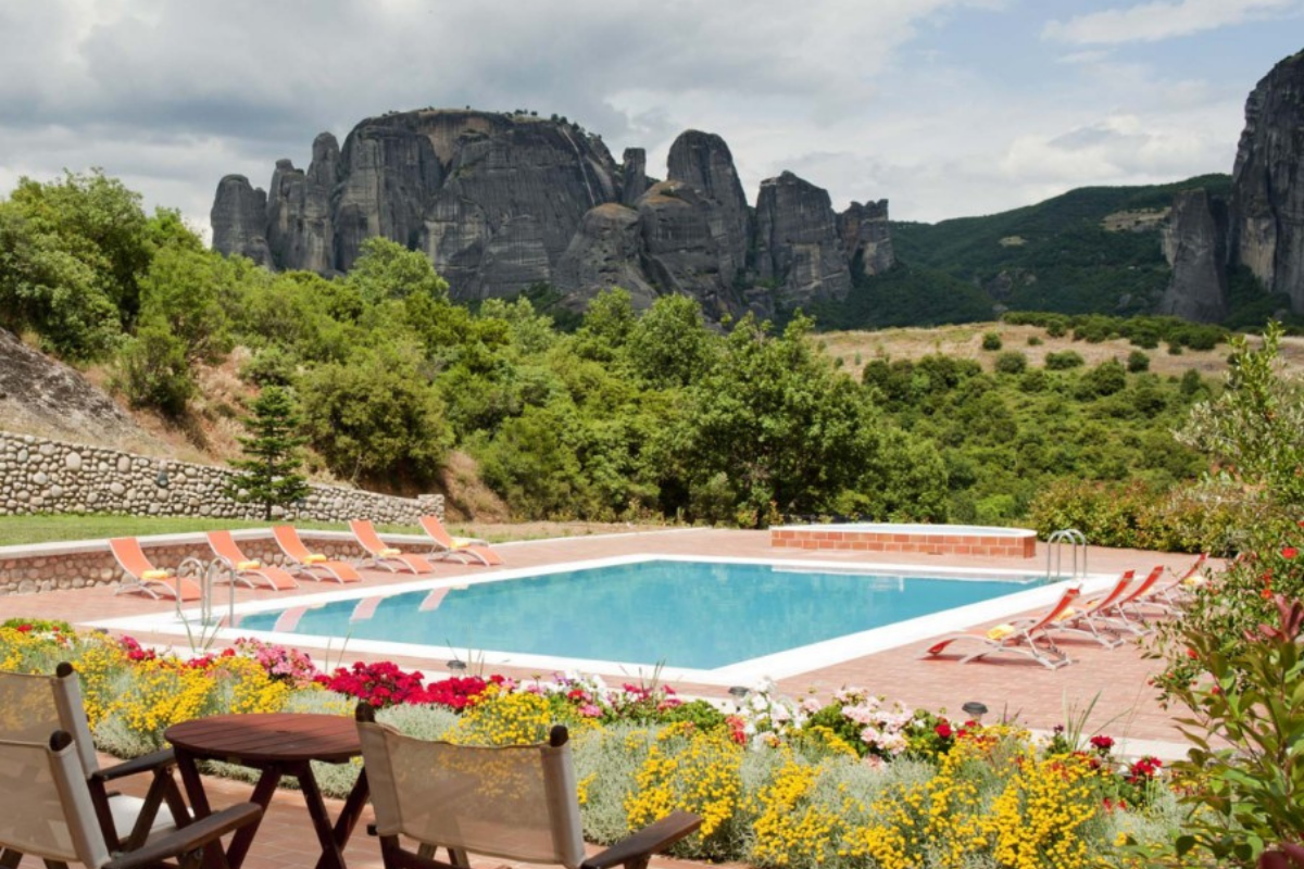 It is built on the highest point of the Kastraki area and visitors can enjoy the stunning view of the Meteora rocks from every corner of the hotel.