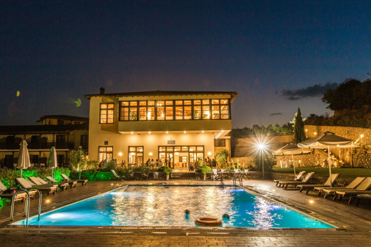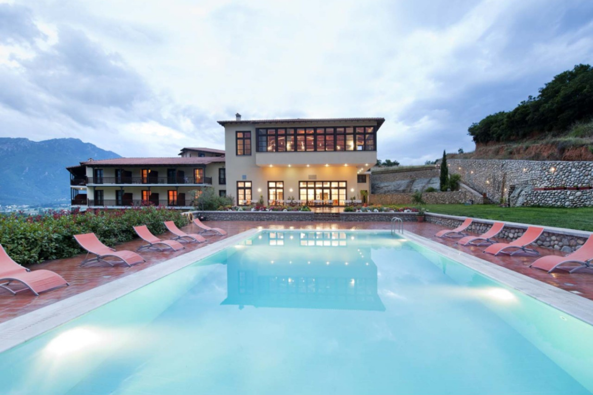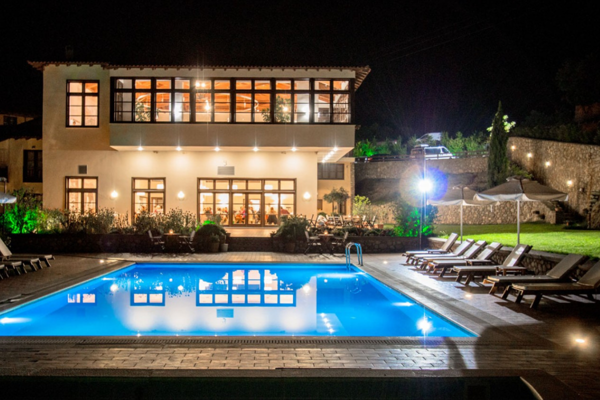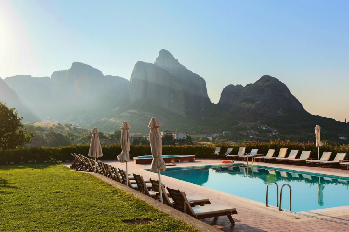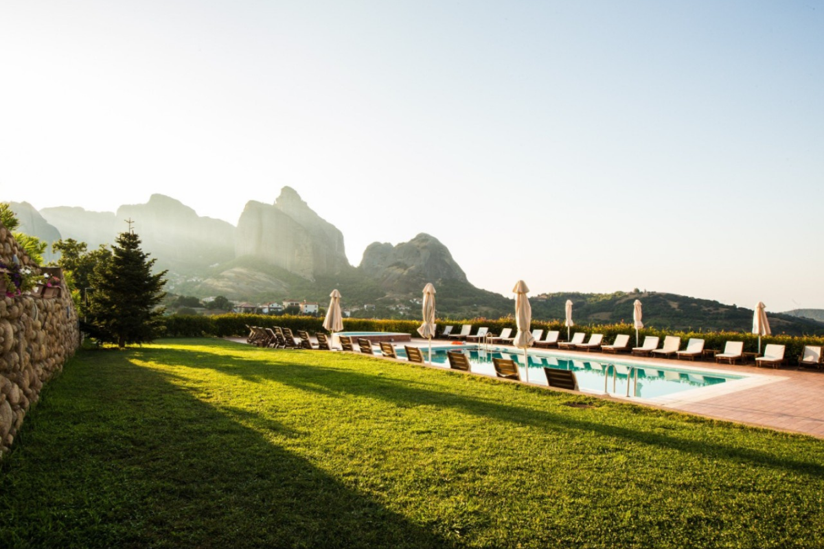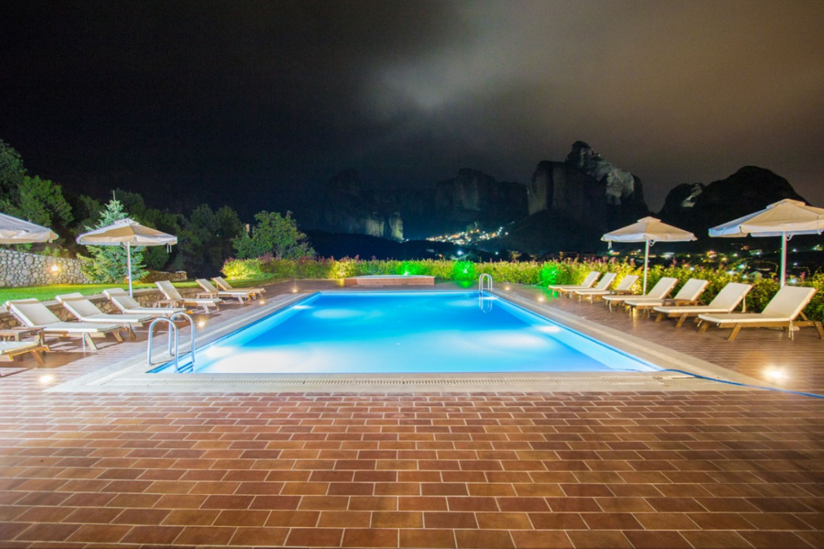 It is built on the highest point of the Kastraki area and visitors can enjoy the stunning view of the Meteora rocks from every corner of the hotel.