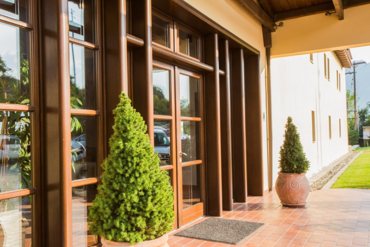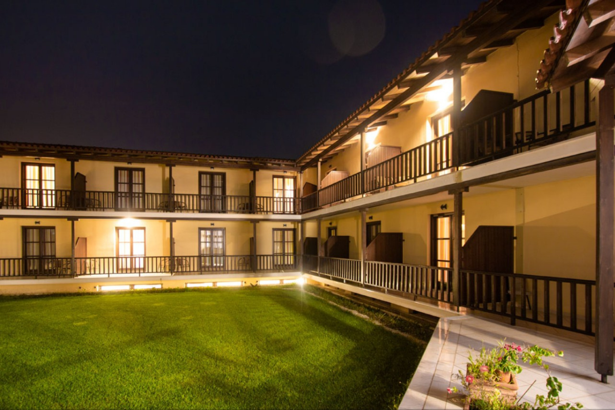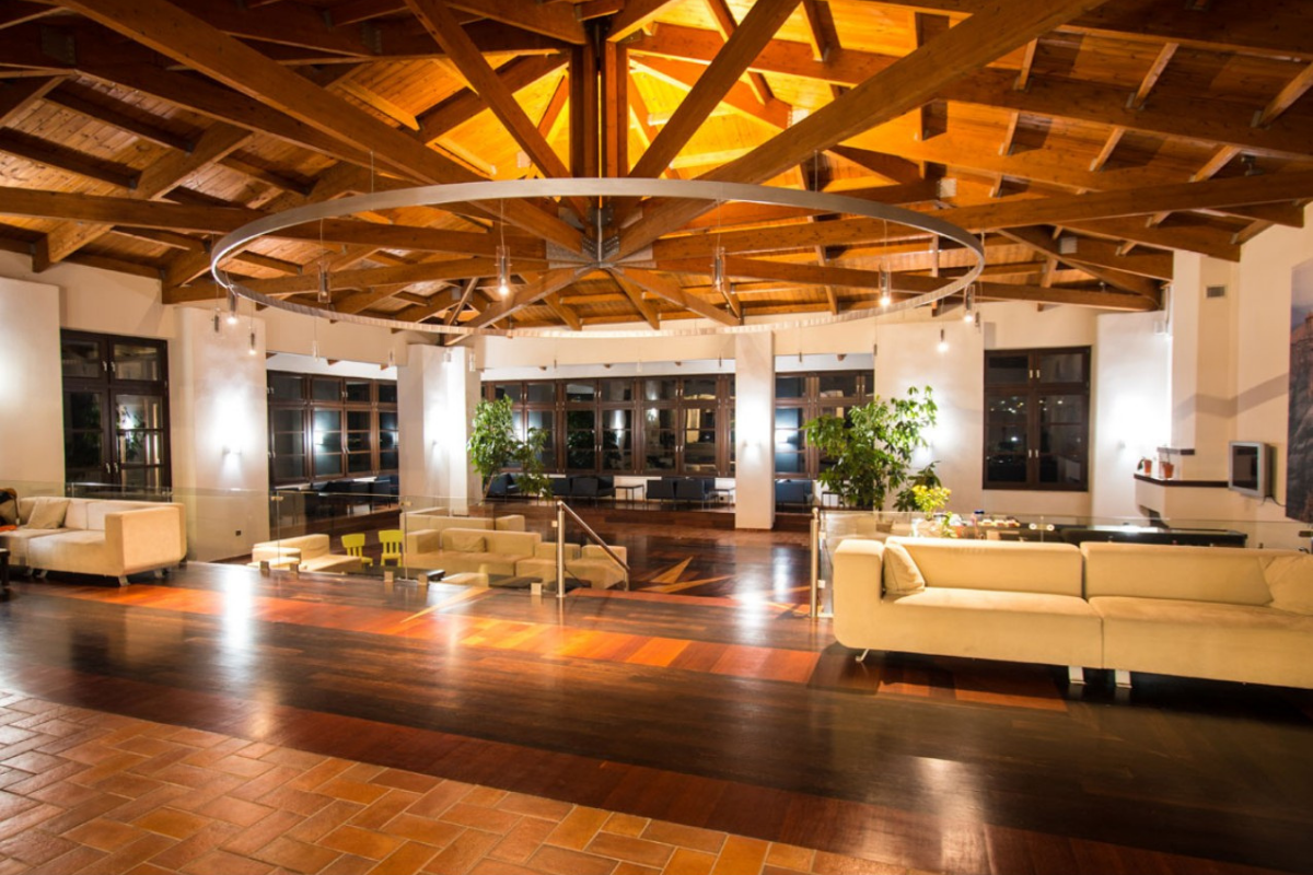 The hotel complex embodies the architectural tradition of the region while featuring minimalist style characteristics.