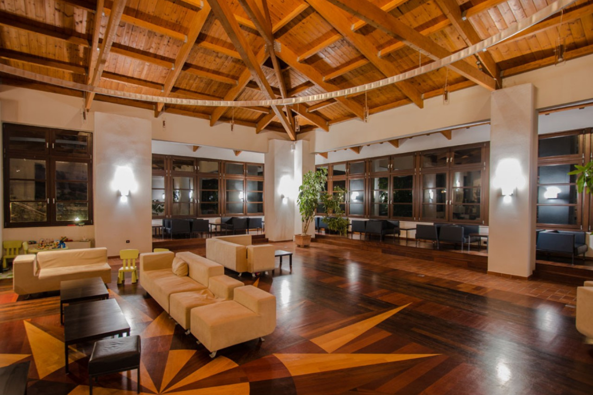 The hotel’s interior is designed in a tasteful minimalist style that incorporates the picturesque landscape of the area. The corridors are decorated with fine photographs by a renowned Greek photographer.