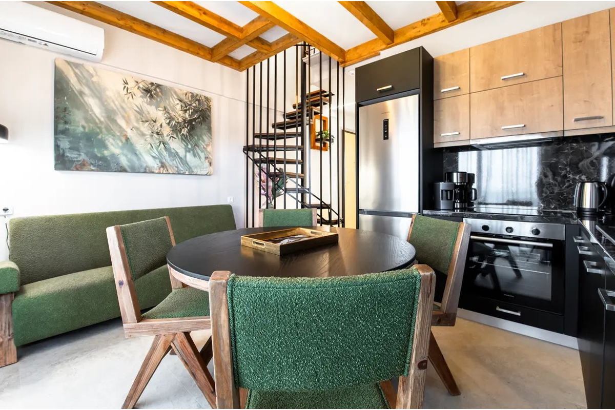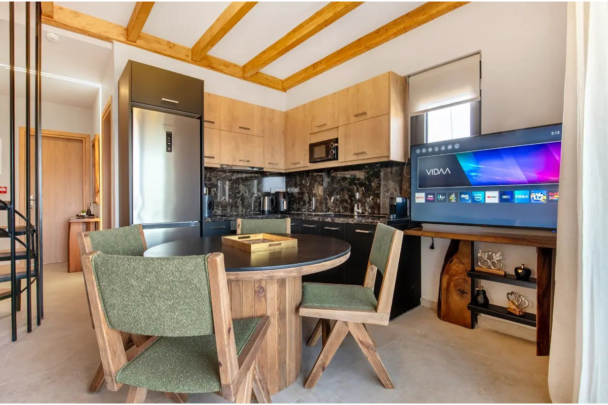 • מטבח מאובזר (כיריים, מקרר, תנור, טוסטר, בלנדר, כלי מטבח)