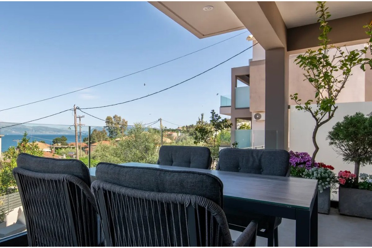 מרפסת פרטית עם שולחן אוכל ונוף מרהיב אל הים