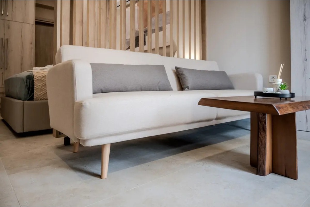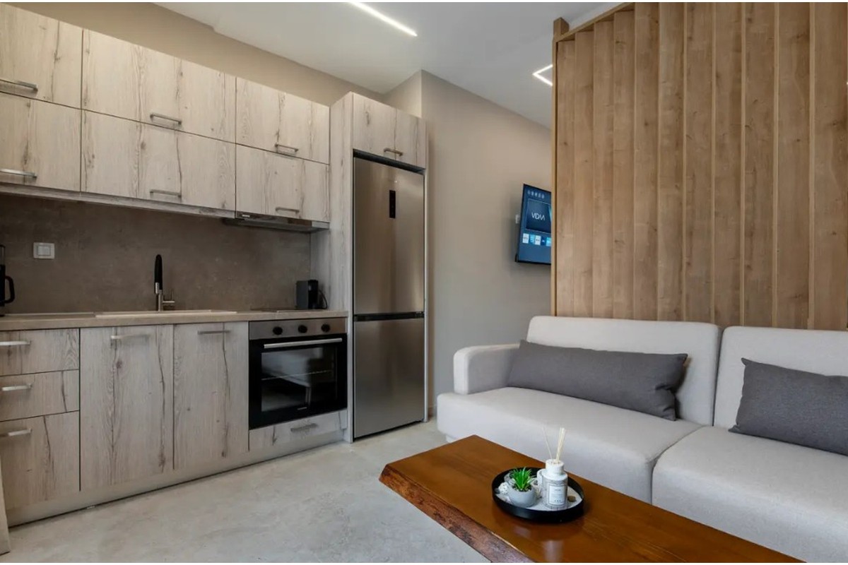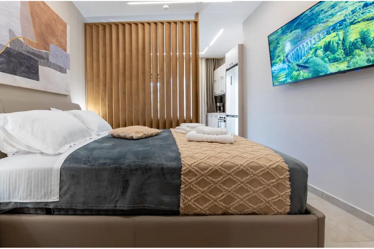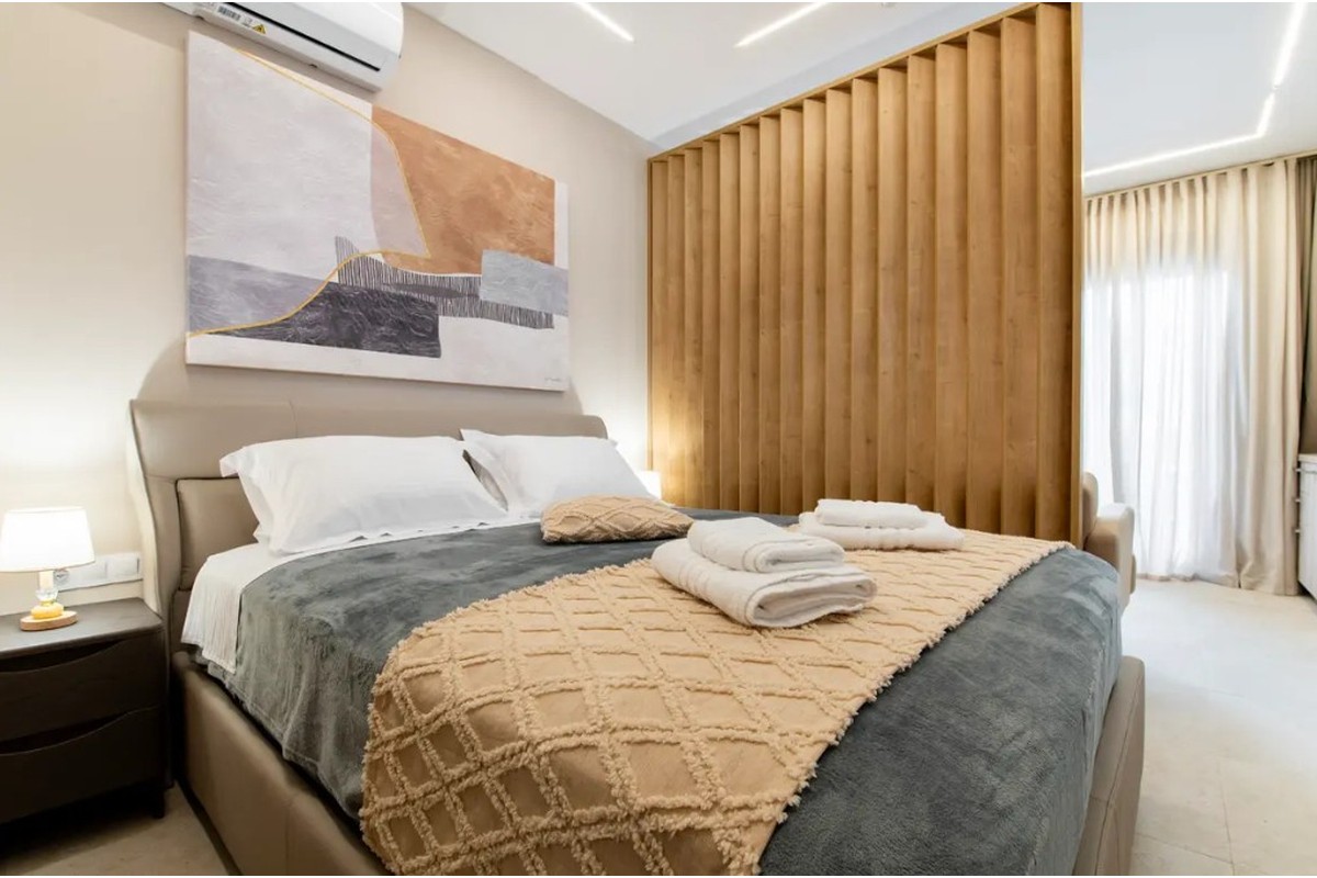 דירת סטודיו עם חציצה מפרידה בין חדר השינה לסלון והמטבח, הדירה כוללת מרפסת מרגיעה.