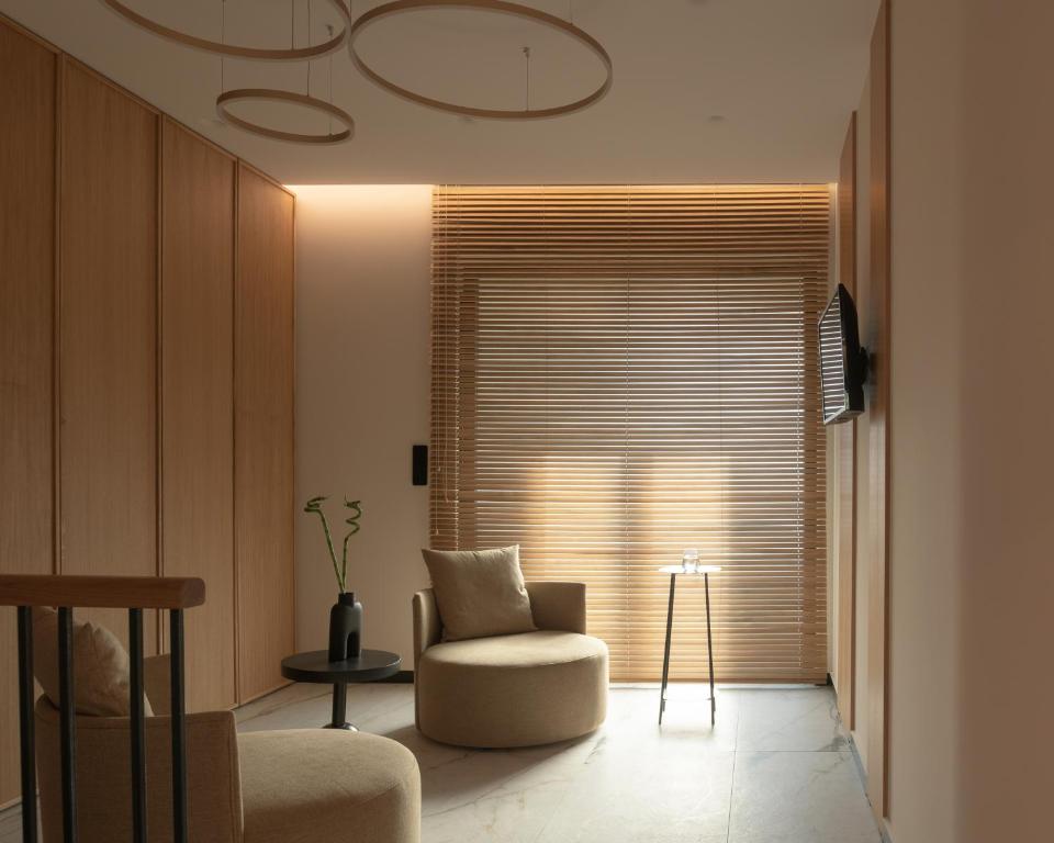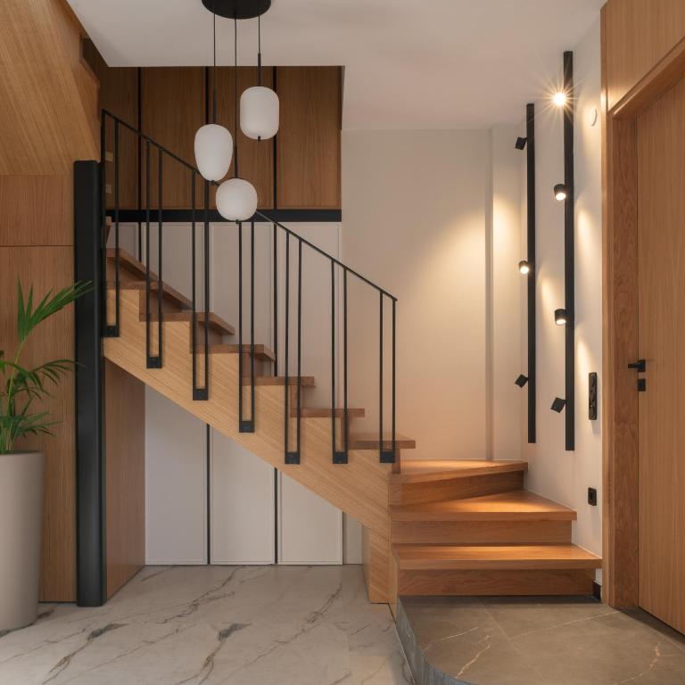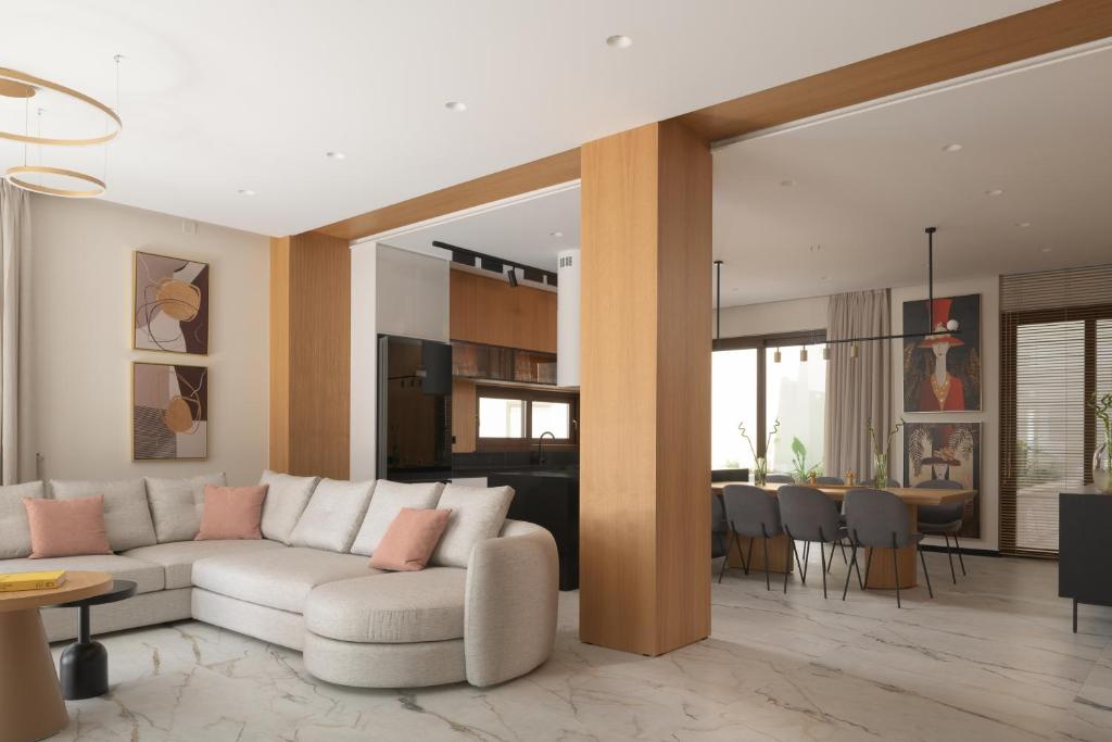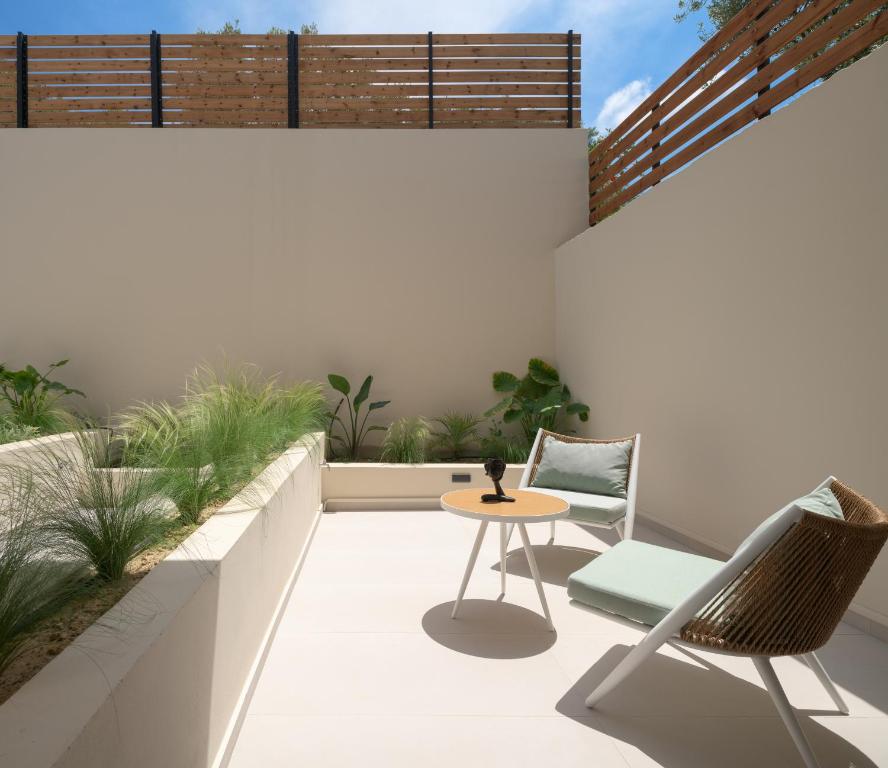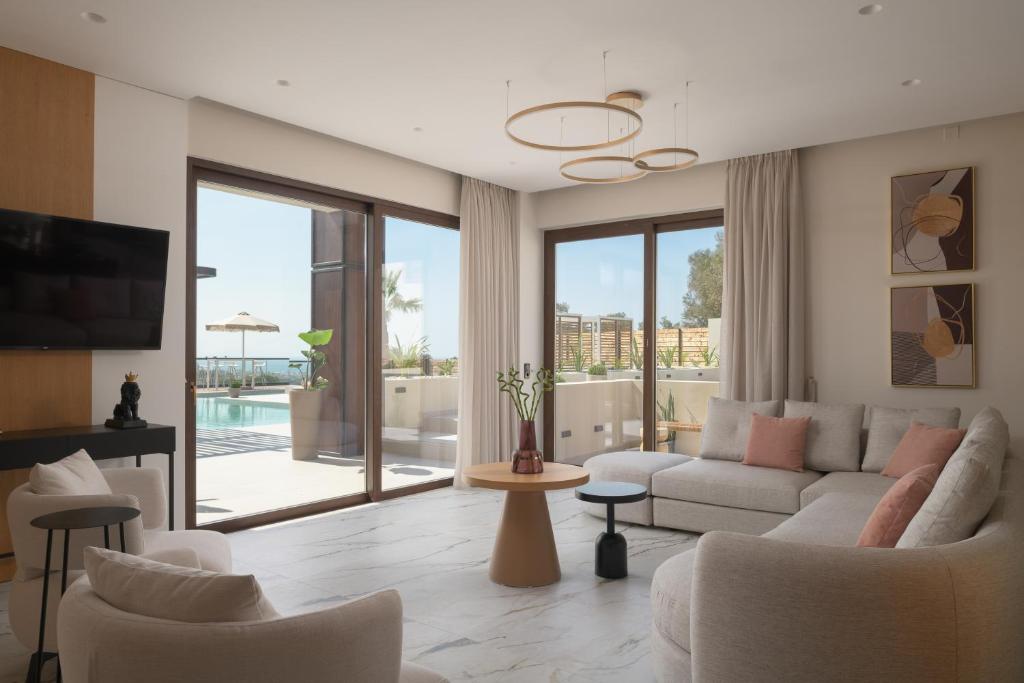 מטבח ופינת אוכל, סלון הכולל טלוויזיה חכמה בגודל 65 אינץ' וגישה ישירה למרפסת הבריכה • חדר שינה עם שתי מיטות יחיד, המחוברות למיטת קינג סייז (1.80×2.00), חדר רחצה צמוד עם תא מקלחת, טלוויזיה חכמה בגודל 32 אינץ', גישה ישירה למרפסת עם פינת ישיבה נוחה. • שירותים משותפים זמינים גם בקומת הקרקע – עם מקלחת צדדית קטנה לשירותים.