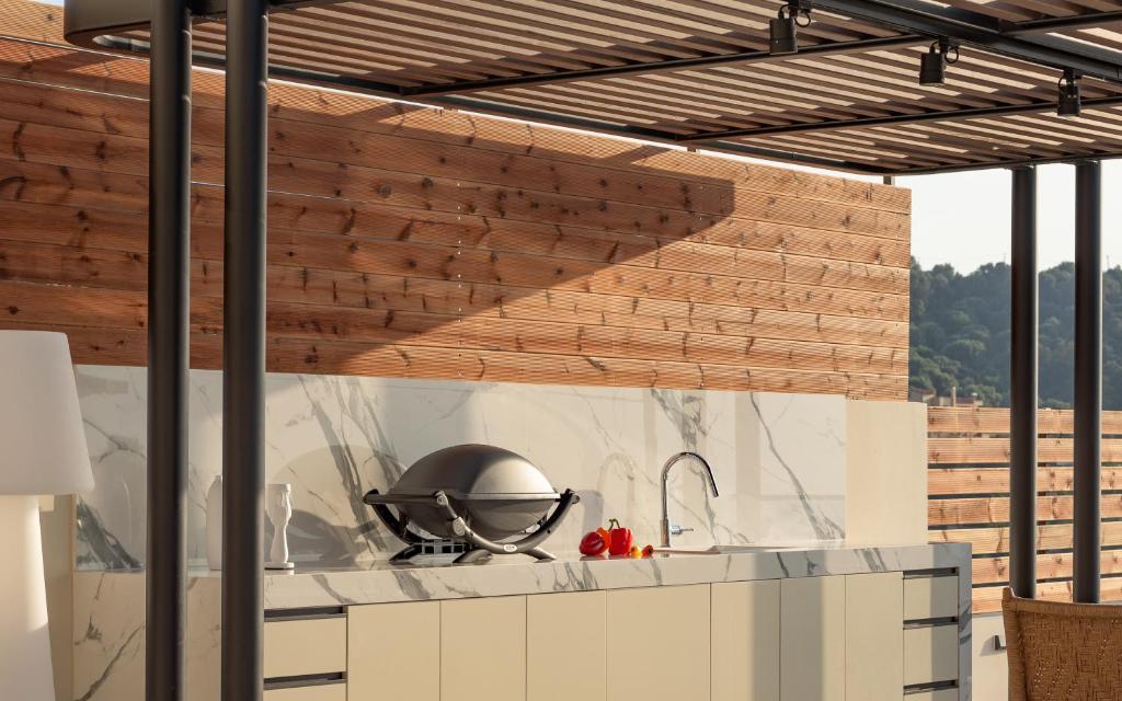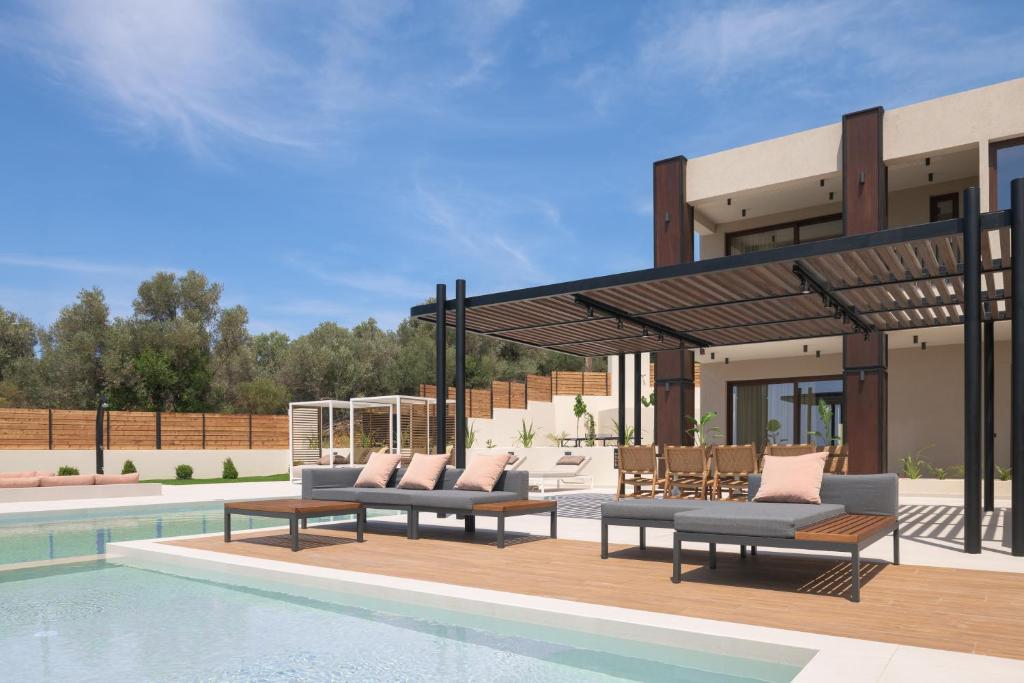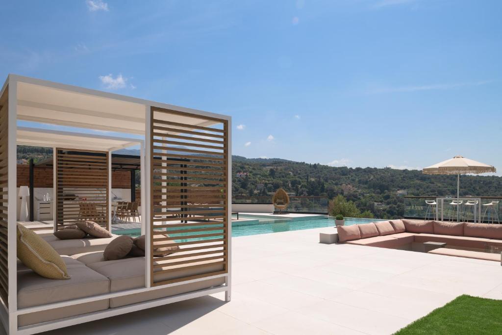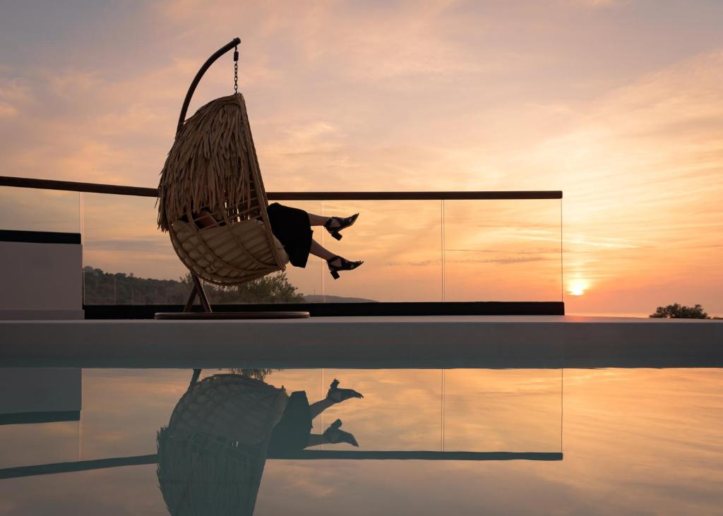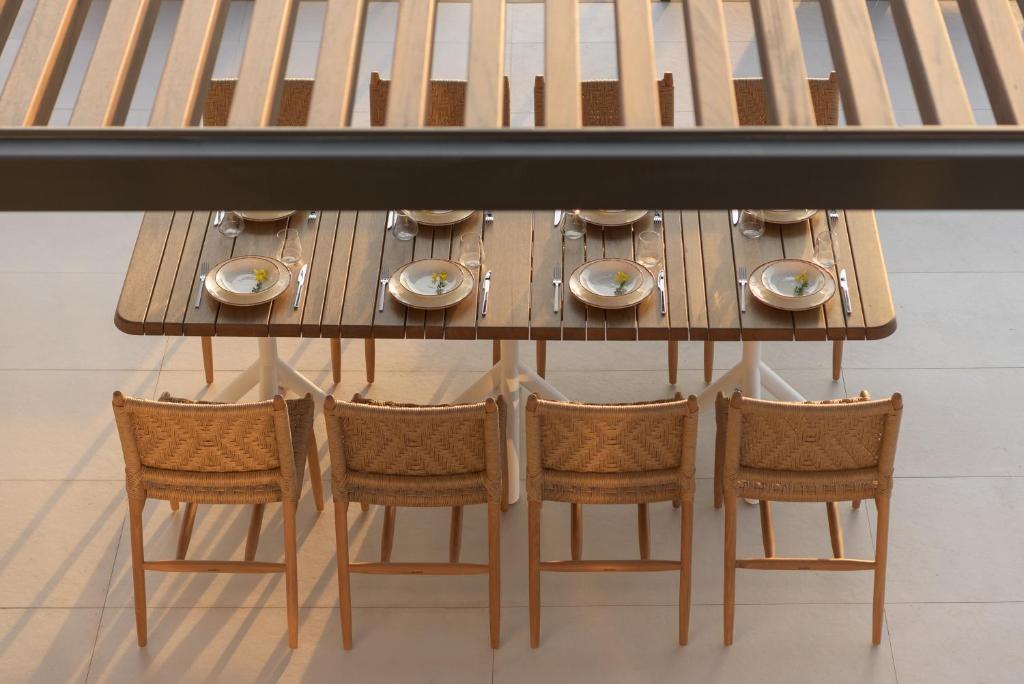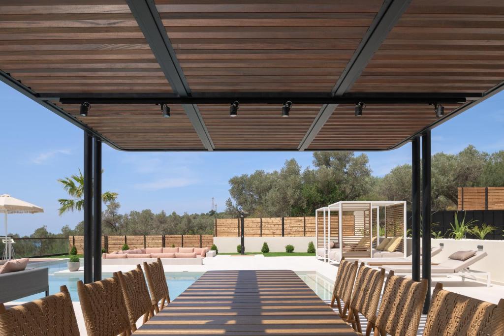 שטח חיצוני של 700 מ"ר – עם מדשאה של 50 מ"ר, ומקושט בבריכת שחייה פרטית מחוממת בגודל 65 מ"ר (בתשלום נוסף) (עומק 1.40 מטר), ג'קוזי ספא מחומם לשישה מקומות, וכן תא בריכה מיוחד לילדים (עומק 0.60 מטר).כסאות נוח יוקרתיים, מיטות באלי , ברביקיו באוויר הפתוח (ברביקיו חשמלי וכיור) , אזור האוכל החיצוני המוצל. אזור הטרקלין החיצוני עם בור האש מושלם לצפייה בשמש שוקעת באוקיינוס.