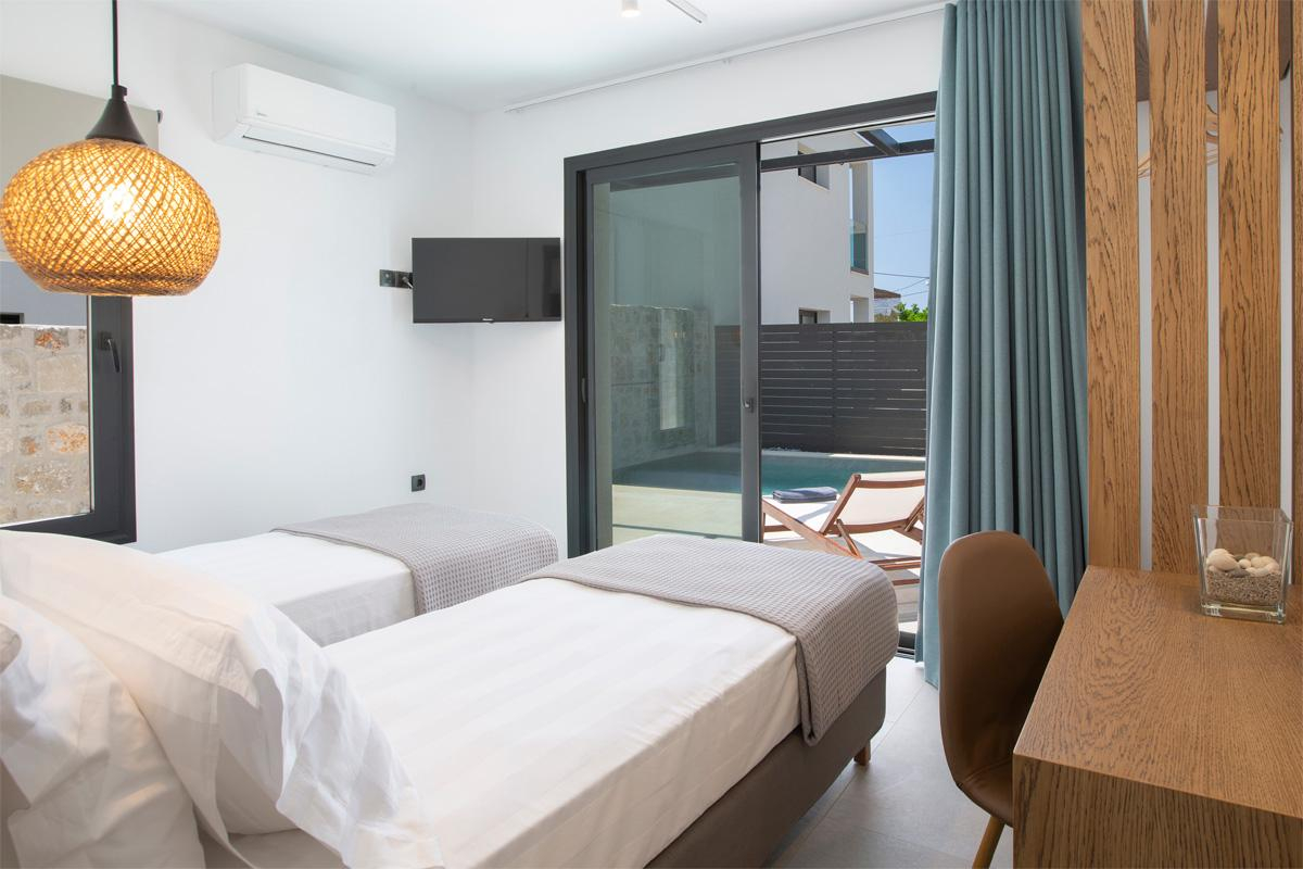 בנוסף, בקומה זו חדר שינה עם שתי מיטות יחיד הכולל מרפסת עם יציאה לבריכה.